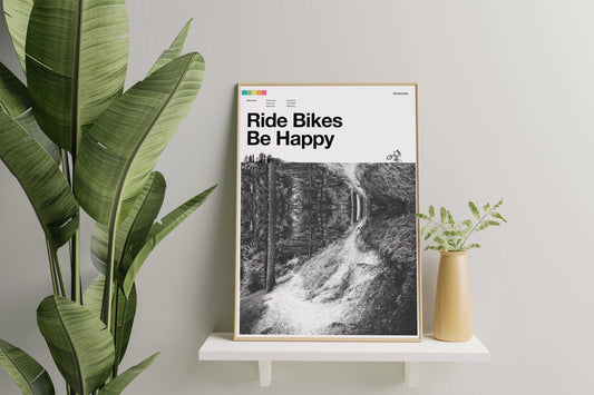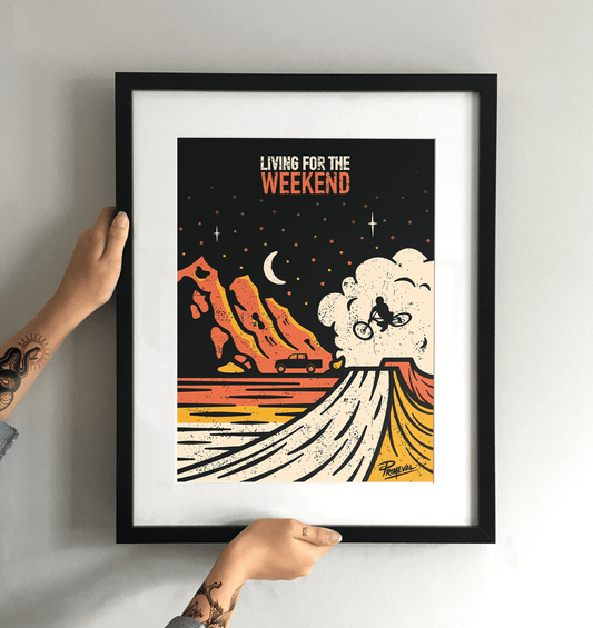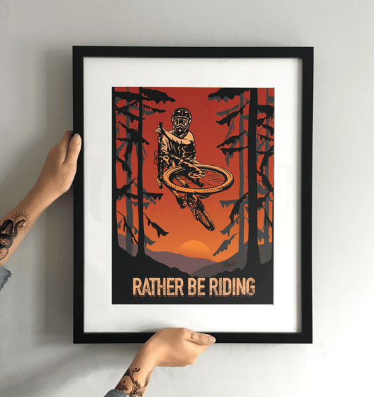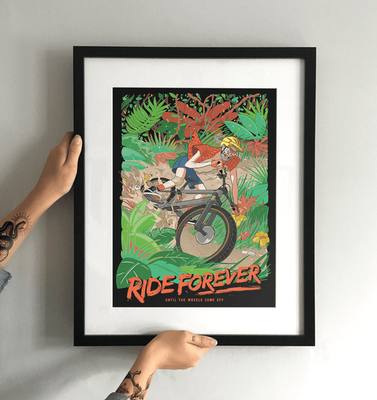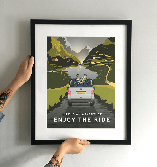 Enjoy The Ride Mountain Bike Art Print with T5 VW Camper Van