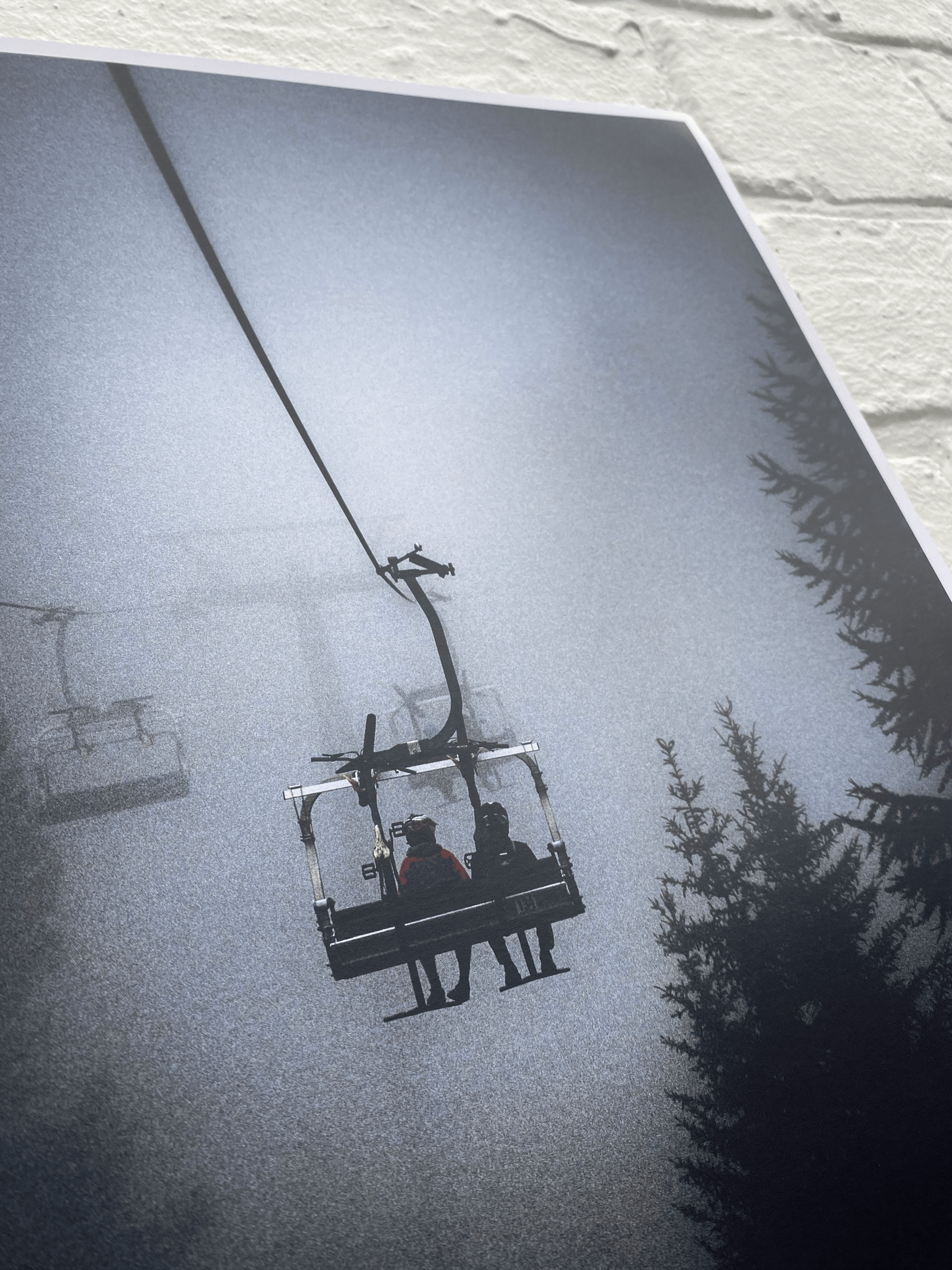 Fotografiert von Scott Windsor in Pila, Italien. Dieses atemberaubende, raffinierte Bild, das an einem launischen Tag im berüchtigten italienischen Skigebiet aufgenommen wurde, wird in jedem Raum Ihres Hauses großartig aussehen. Wir mögen besonders die Atmosphäre, die es schafft, wenn es gerahmt und an dunklen Wänden aufgehängt wird, aber genauso schön in einem hellen und luftigen Flur, um Kontraste zu schaffen. Scott ist ein professioneller Fotograf und Marketingmanager bei MTB Beds und hat seit seiner Teenagerzeit Mountainbikes und Action-Sportarten für einige hochkarätige Unternehmen wie Red Bull fotografiert.