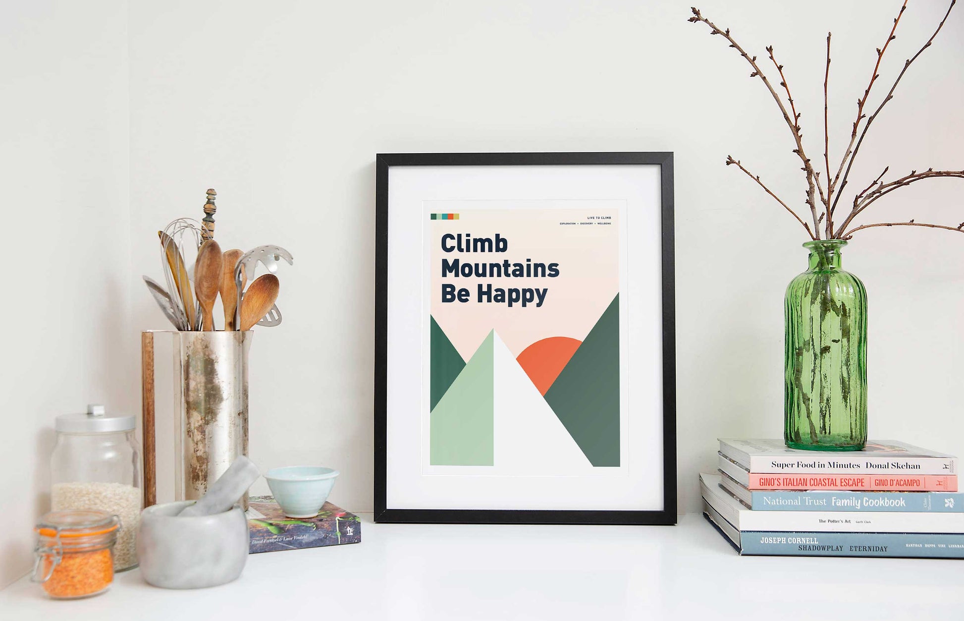 Climb Mountains Be Happy Art Print