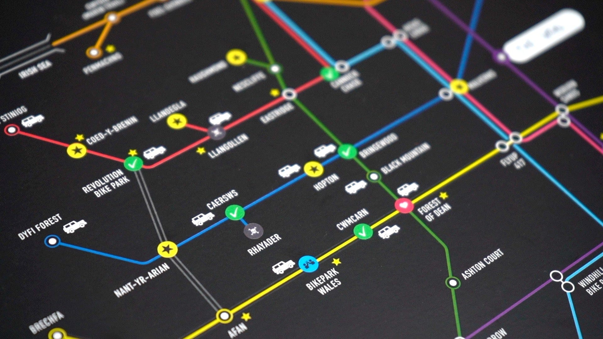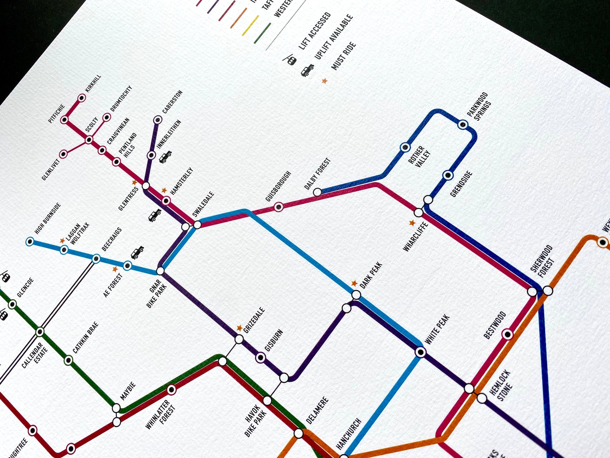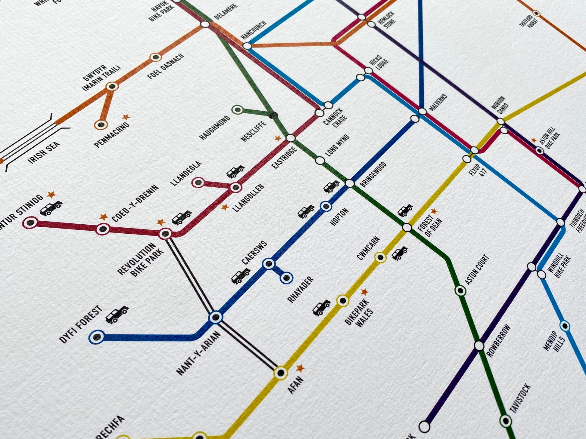 Diese Mountainbike-Karte des Vereinigten Königreichs ist von der Londoner U-Bahn-Karte inspiriert und bietet die besten Orte, um mit dem Fahrrad zu fahren und Ihre Grenzen zu testen. Wir haben mehr als 10 Jahre damit verbracht, das Land zu bereisen und Orte von Glentress bis Gawton zu befahren, und haben unser gesamtes MTB-Wissen in die Schaffung dieses atemberaubenden Kunstwerks für gleichgesinnte Fahrer gesteckt. Inspirieren Sie Ihre nächste Fahrt, perfekt zum Aufhängen im Büro und Träumen vom Wochenende.