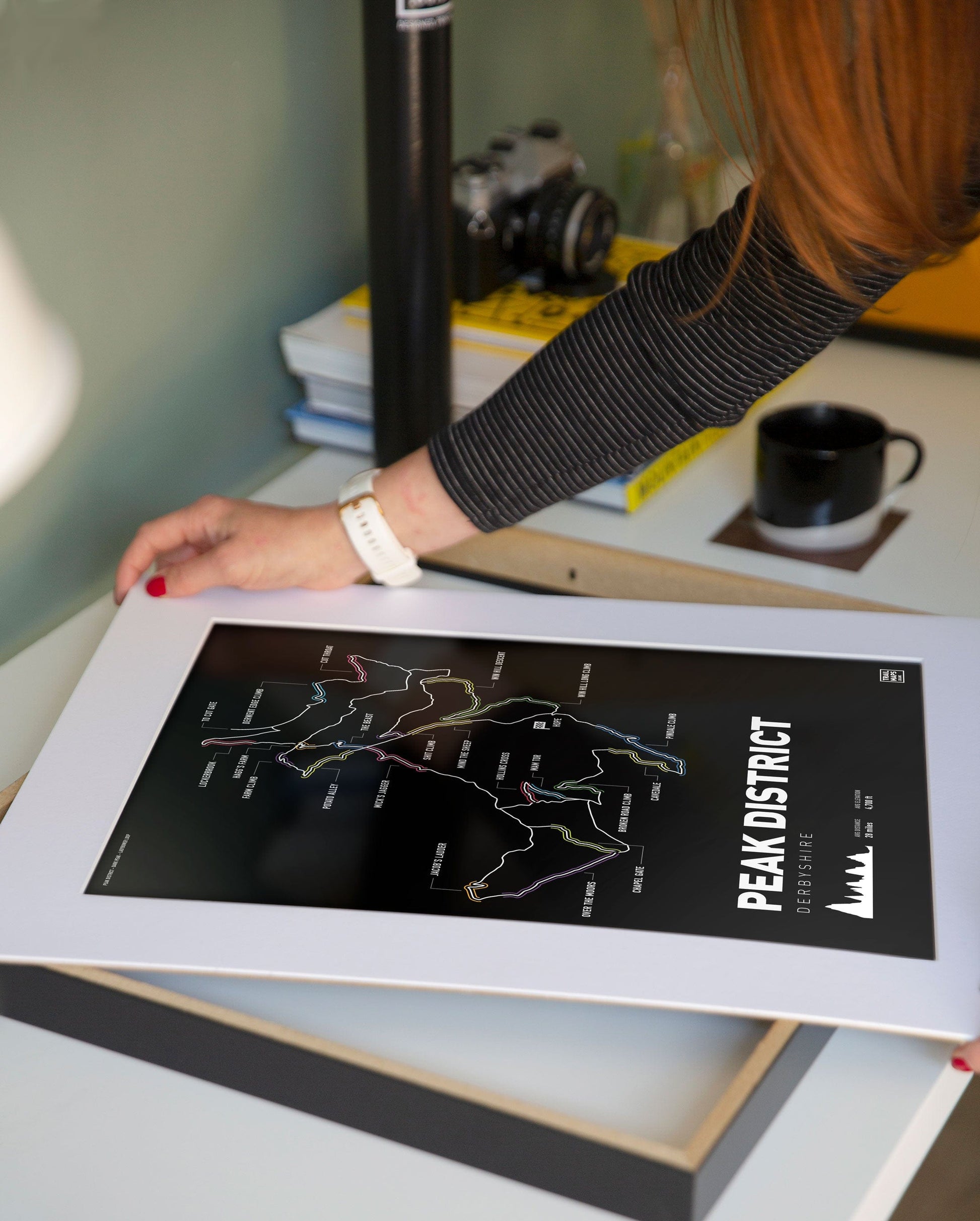 Peak District ist seit den Anfängen ein Paradies für Mountainbiker. Dieser Kunstdruck zeigt einige der Klassiker vom „Dark Peak“, der am Ladybower-Stausee vorbeiführt und durch Hope, Castleton und Edale führt, diese epische Mountainbike-Route kann in vielen verschiedenen Varianten gefahren werden – aber wir denken, dass es immer am besten ist, dort zu beginnen Hoffnung (auf den Kuchen!).