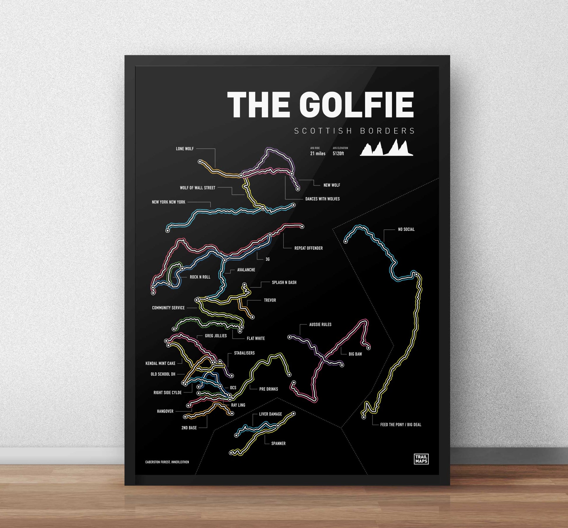 The Golfie ist die Heimat einer Fülle von steilen, natürlichen schottischen Trails im Tweed Valley. Die Golfie TrailMap ist mit kurzen Tracks übersät, die das Herz höher schlagen lassen, und bietet Favoriten wie Flat White, Feed the Pony und Wolf of Wall Street.