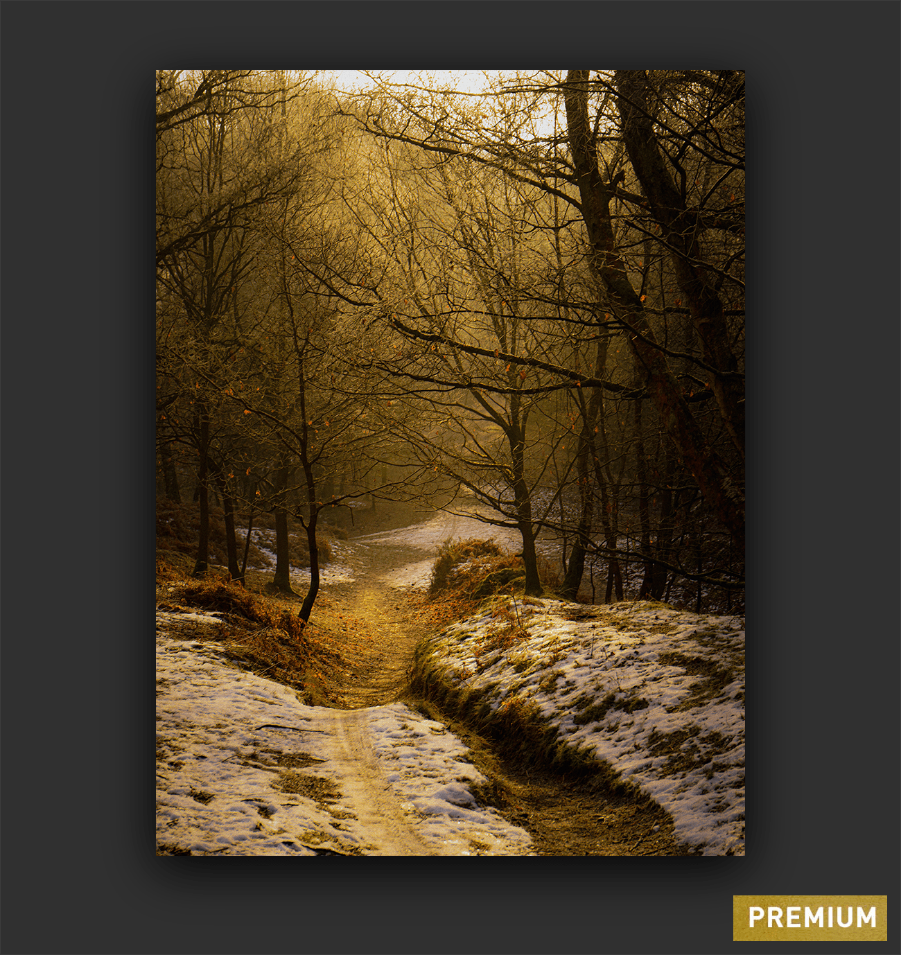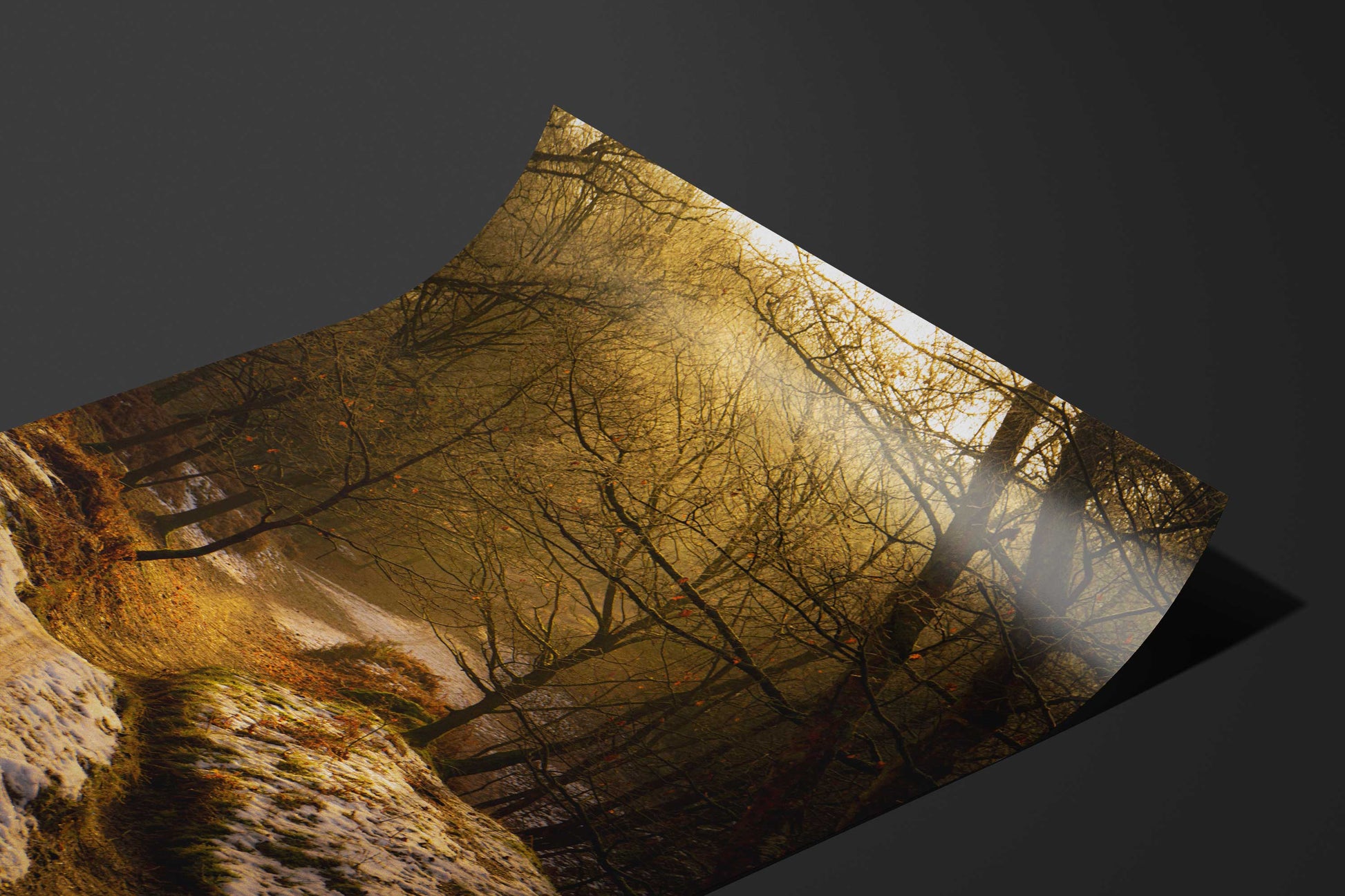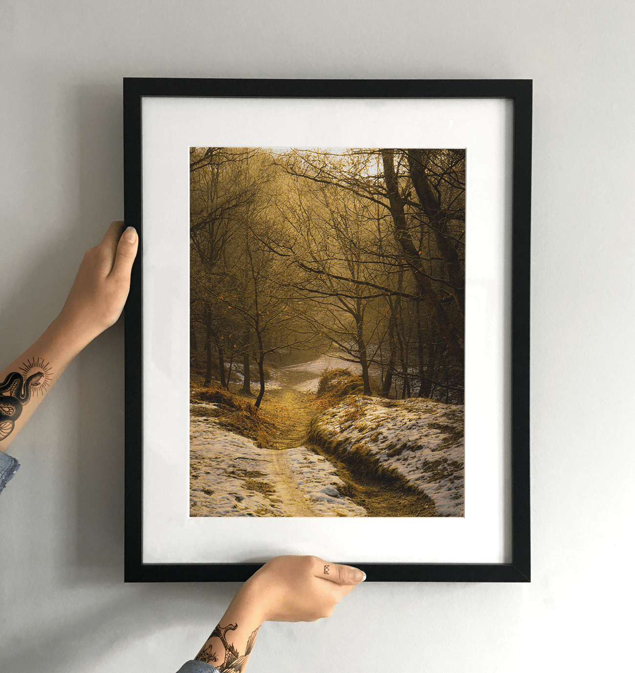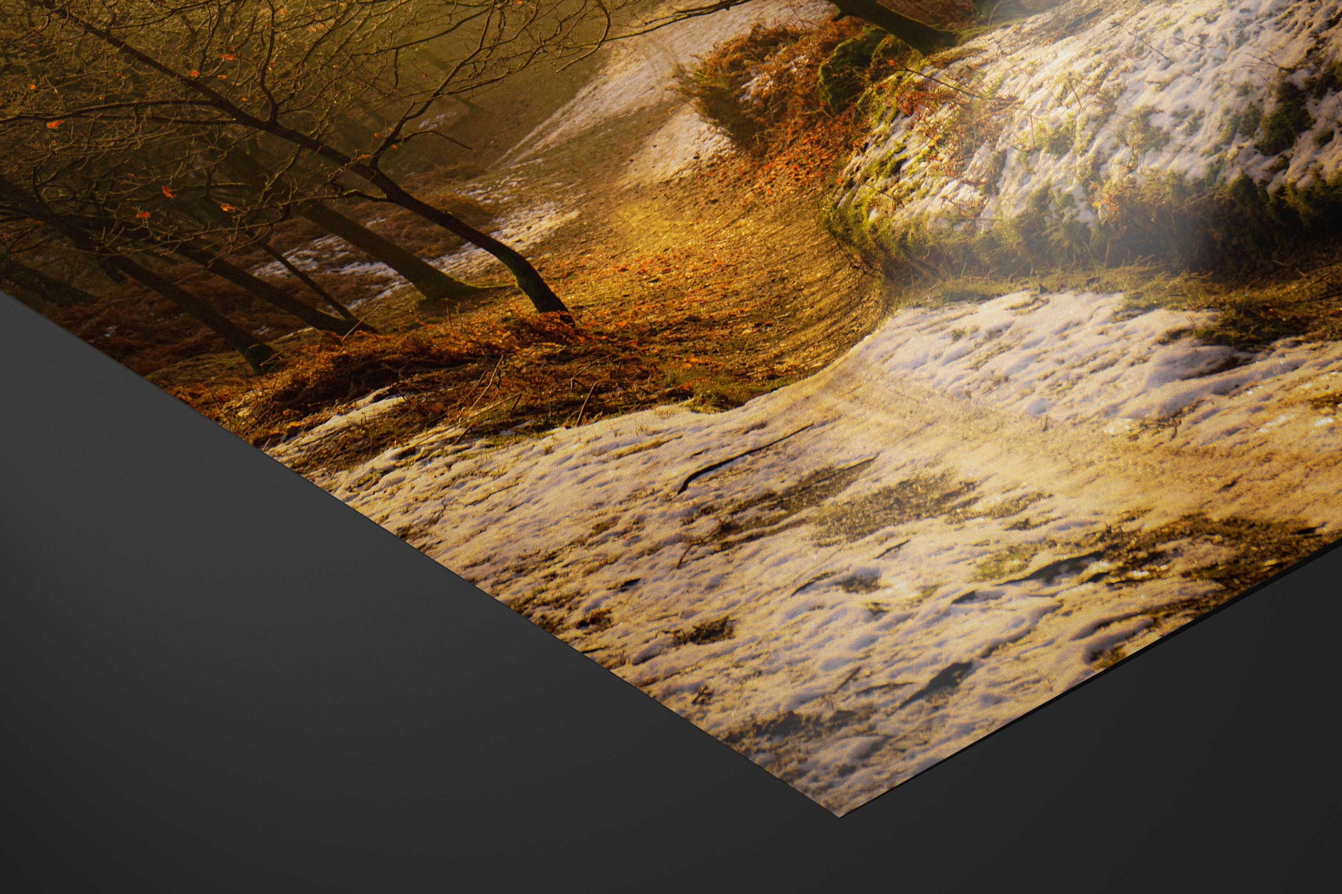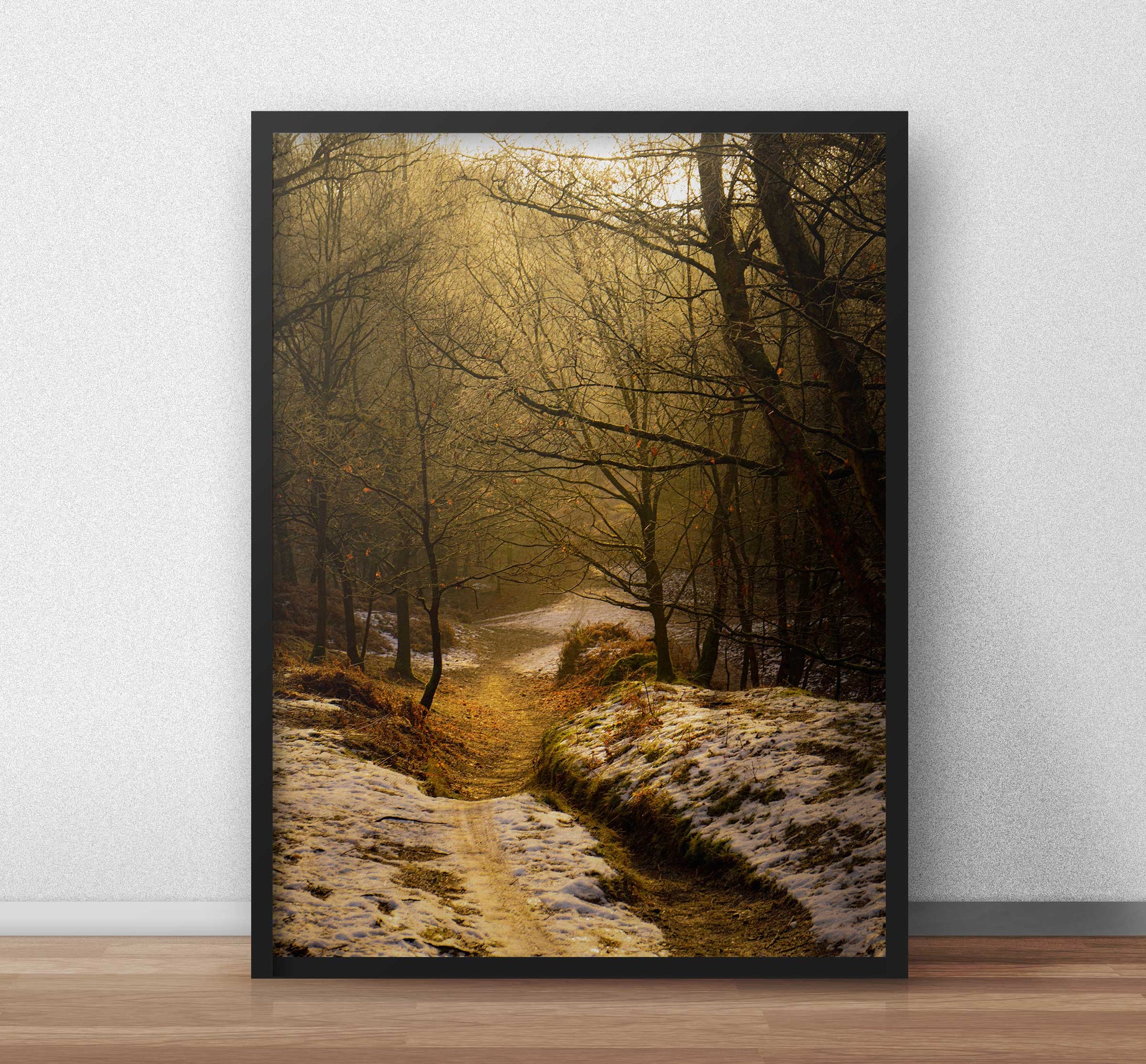 Photographed by Aaron Tolley, this captivating image is a part of our exciting new Premium Photographic Range of art prints. The photo was taken in December, during the snow melt and as the sun was peaking through the forest.
