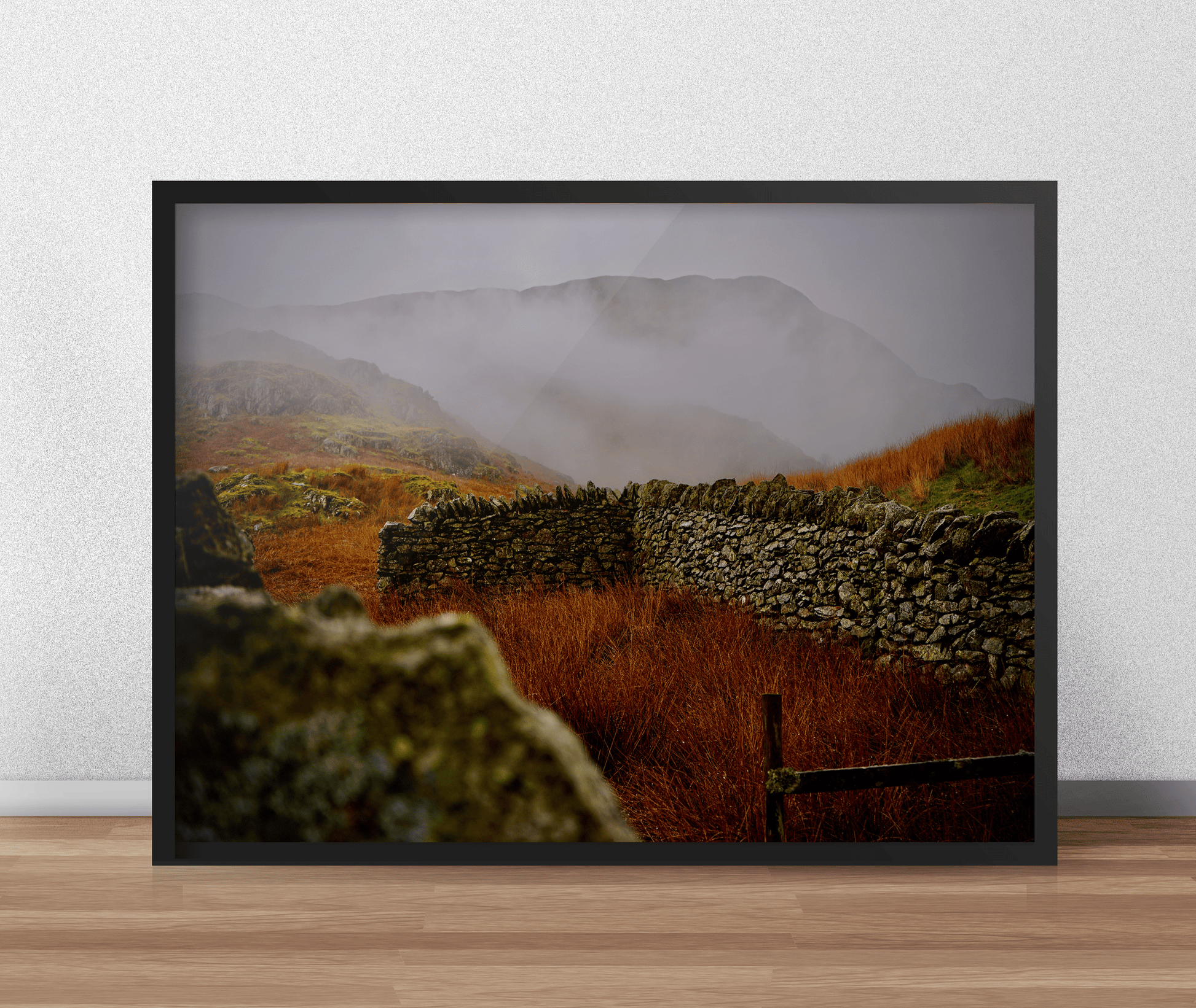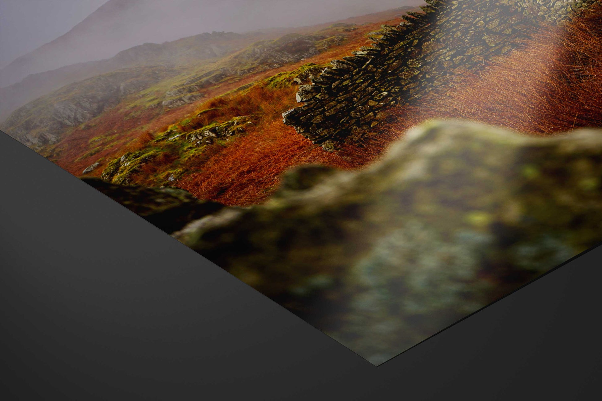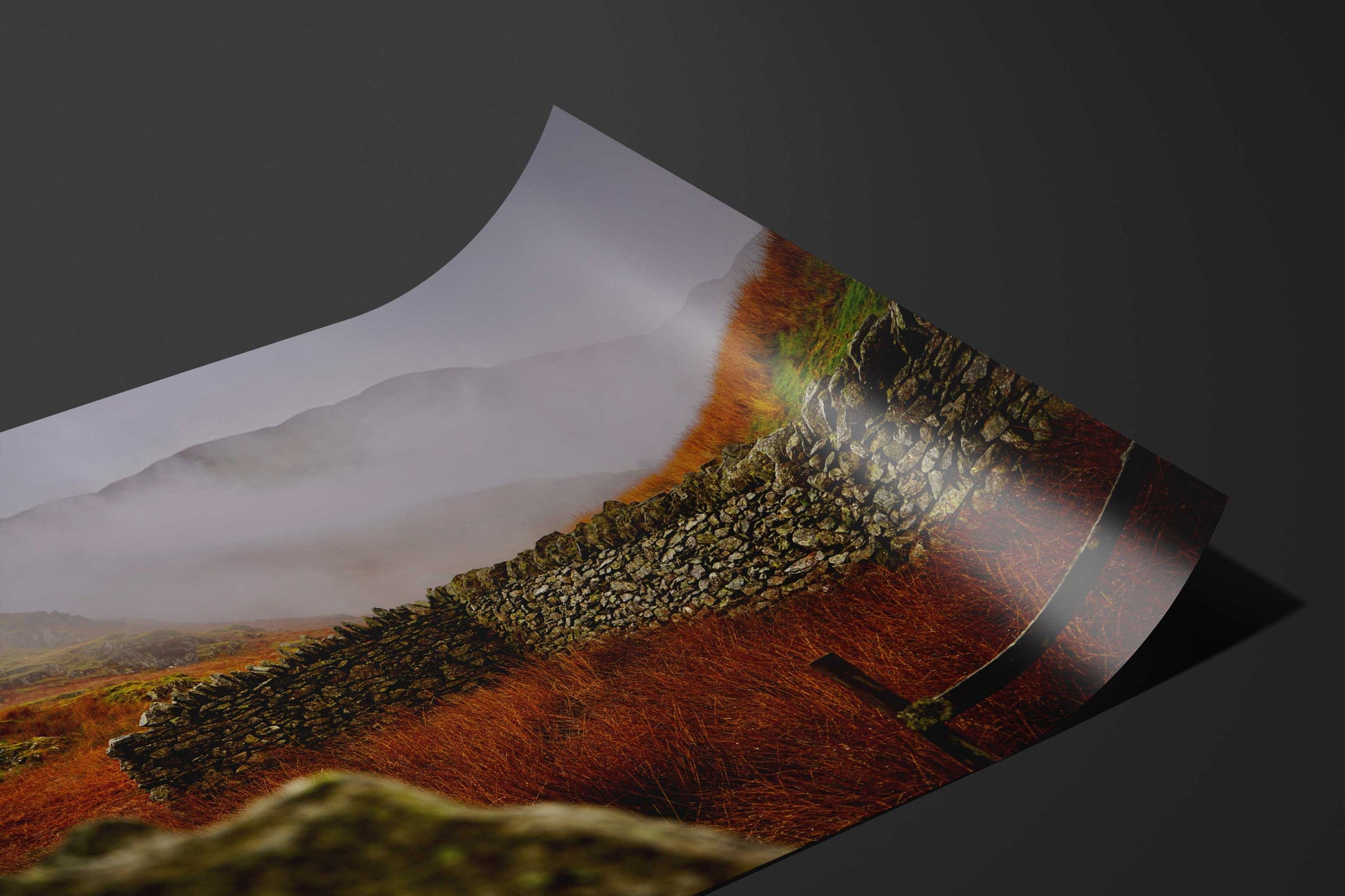 Photographed by Aaron Tolley, this captivating image is a part of our exciting new Premium Photographic Range of art prints. The photo was taken during a serene late Autumn evening near Glenridding, offering a breathtaking view of Helvellyn within the enchanting Lake District National Park.