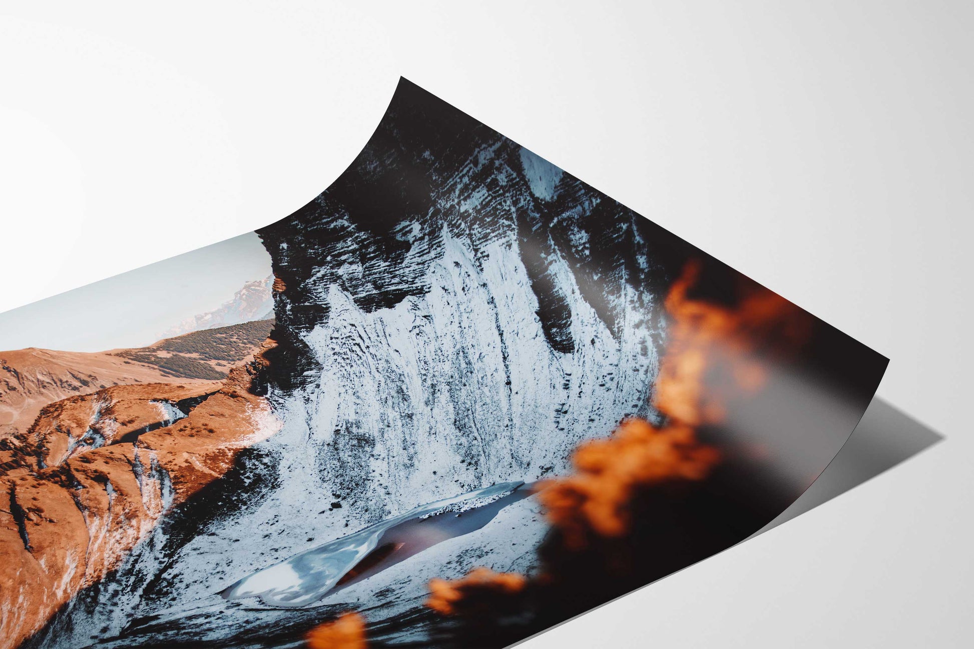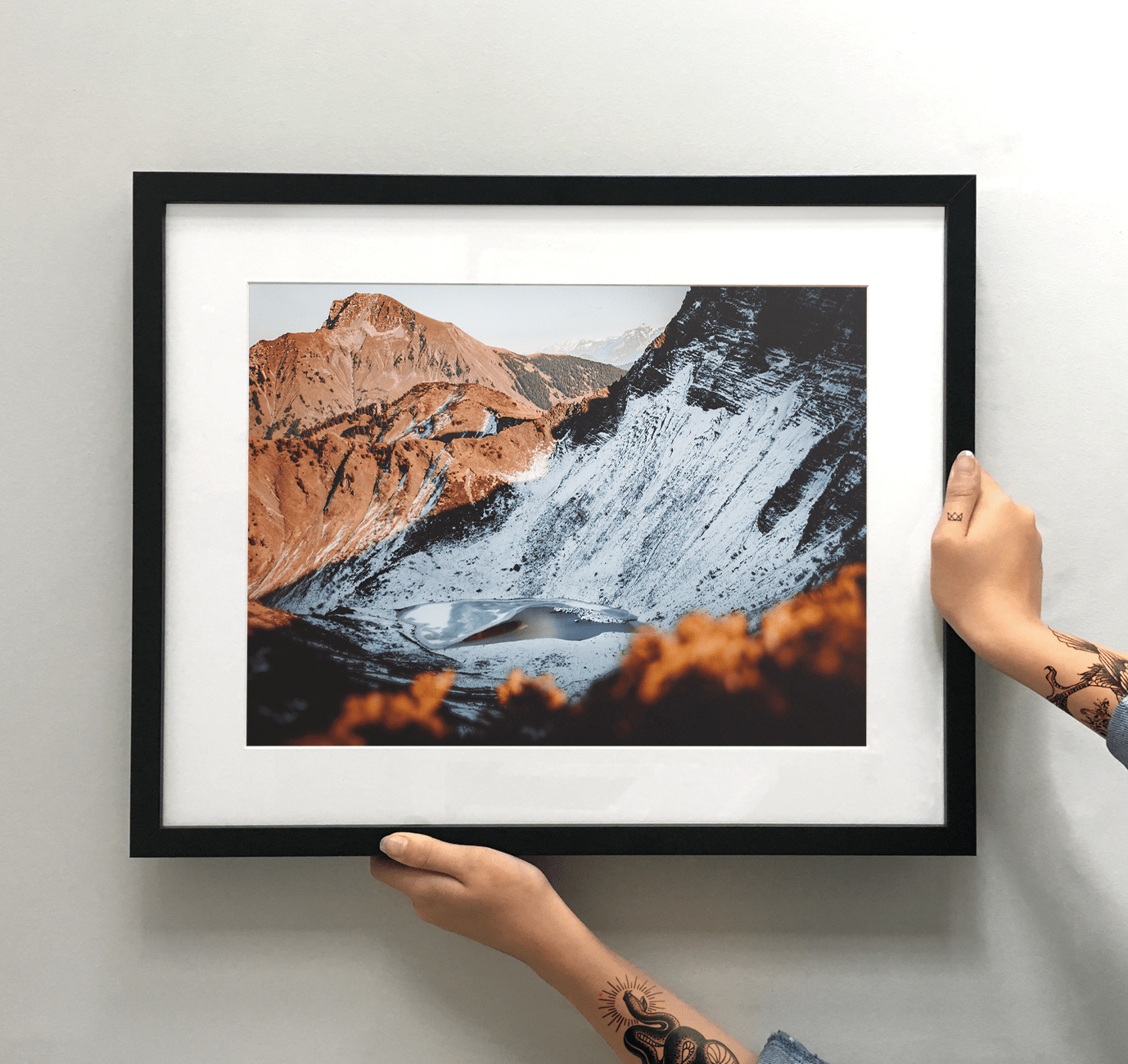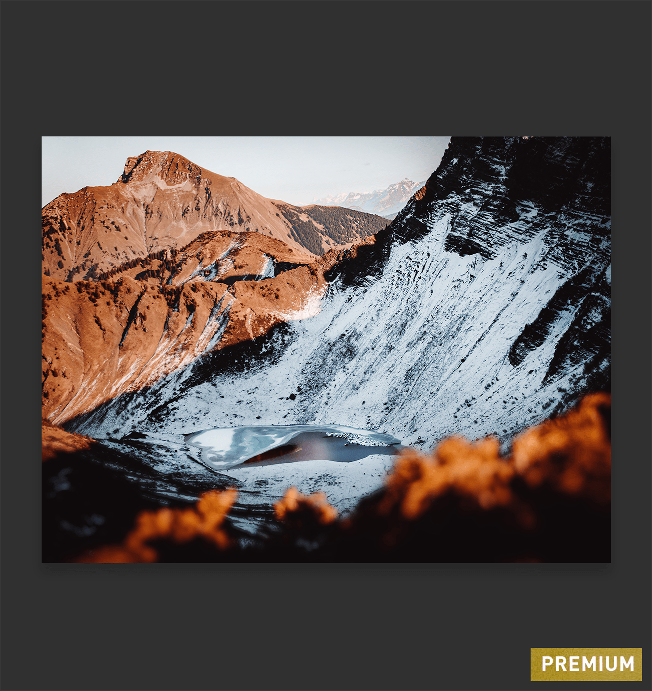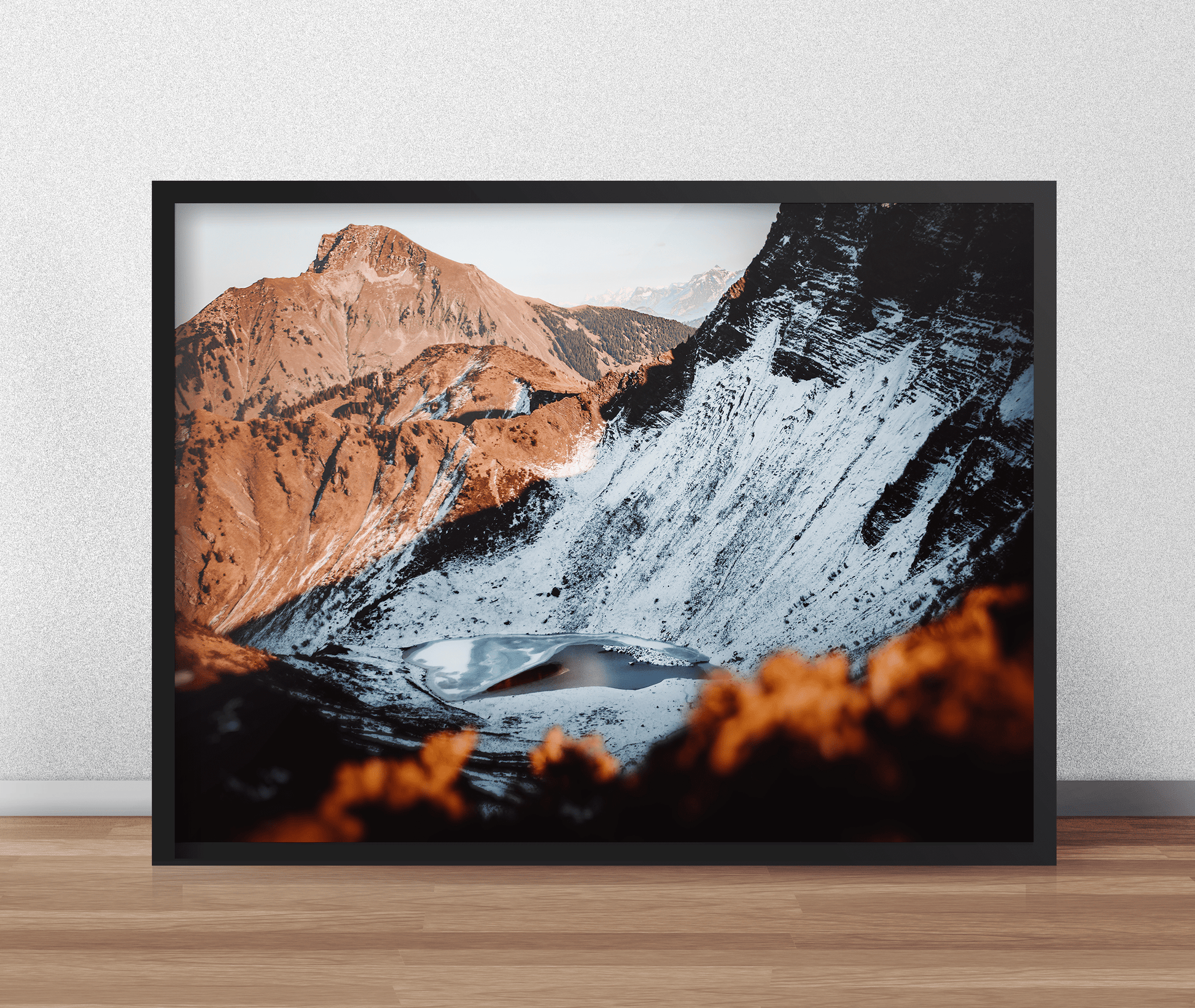 Photograph taken by Sadie Aldridge the day after Covid restrictions were lifted in France. She hiked up to Lac De Tavaneuse just outside of Morzine to capture the final moments of Autumn before the snow fall came. We love the way the shadow of the mountain and the snow line meet, and the contrast it creates.